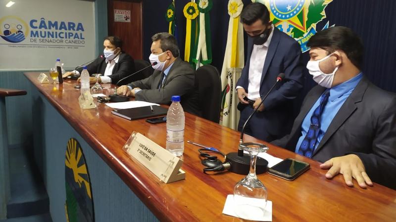 A Câmara de Senador Canedo realizou nesta quinta-feira, 28/05, a 6ª sessão ordinária do mês de maio, presidida pelo presidente da Casa, dr. Reinaldo Alves, com presença dos vereadores: Carpegiane Silvestre, Diego Graciano, Elismar Mendes (D’Mel), Eliel José, Luiz Mário Lisboa (Luiz da Saúde), Roberto Moreira (Betim), Rodrigo Rosa, Rosalvo de Souza, Sérgio Bravo Júnior, Vilmar Lima e Wander David. O acesso ao plenário ficou restrito aos parlamentares e às equipes de comunicação e legislativa, seguindo orientações que visam prevenir à proliferação do Coronavírus, medida que continuará nas próximas sessões.
